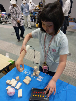 展示では,ソフトアバターロボット,肘関節・足関節運動装置,小児用動力義手のデモストレーションを行いました.